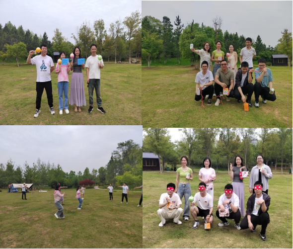 活动伊始,霜叶松风景区内一片欢声笑语。“你比我猜”环节中,手势与表情的趣味演绎引发现场阵阵欢笑;“两人三足”“一块五毛”等经典游戏里,队员们喊着口号协作奔跑,快速组队中展现默契;“蒙眼找人”“猜猜我是谁”则通过触觉与记忆挑战,让同事间的了解更进一层。青山绿水间,青年职工们在游戏中释放压力、加深信任,团队凝聚力在协作中悄然提升。